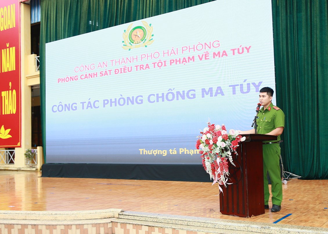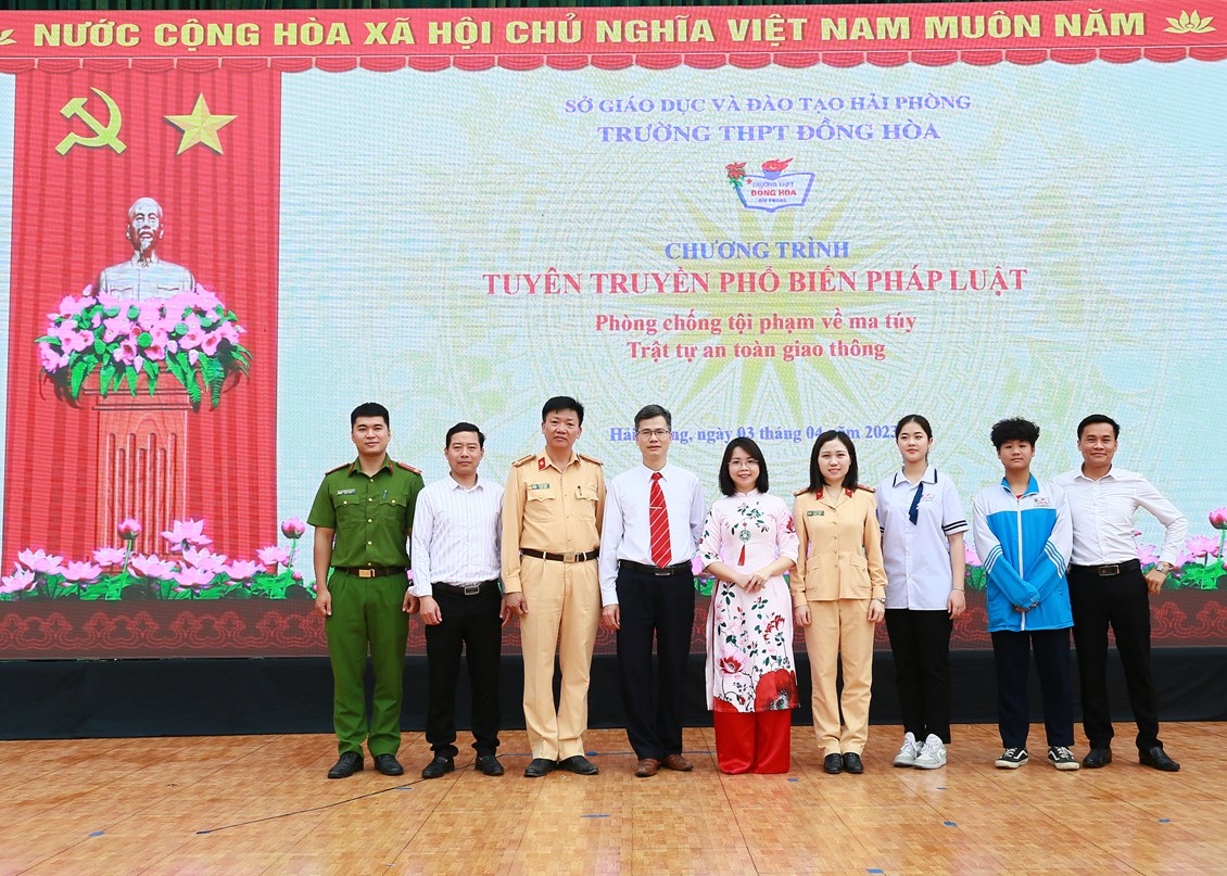 Tham dự chương trình về phía Công an TP Hải Phòng có đ/c Trung úy Nguyễn Thành Trung cán bộ Phòng Cảnh sát điều tra tội phạm về ma túy, về phía Công an Quận Kiến An có đ/c Trung tá Lê Hồng Đăng, phó đội trưởng Đội CSGT - Công an Quận Kiến An; về phía nhà trường có nhà giáo Hoàng Thị Phương Thảo - Bí thư Đảng ủy, Hiệu trưởng nhà trường; cùng các Thầy, Cô giáo trong Ban Giám hiệu và Hội đồng giáo dục, gần 1300 học sinh trường THPT Đồng Hoà.