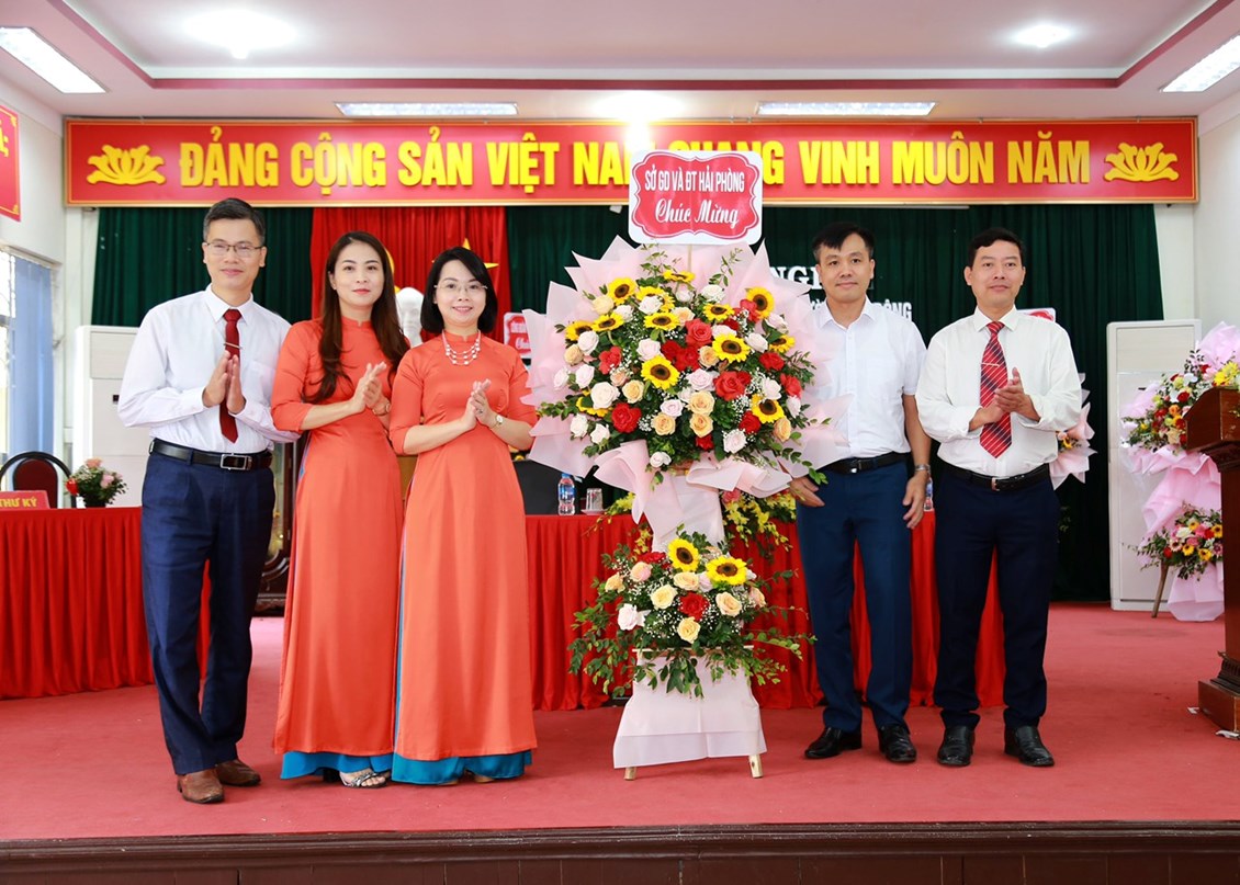 Nhà giáo Hoàng Thị Phương Thảo, Bí thư Chi bộ, Hiệu trưởng thừa uỷ quyền Giám đốc Sở GD&ĐT Hải Phòng tặng giấy chứng nhận CSTĐCS