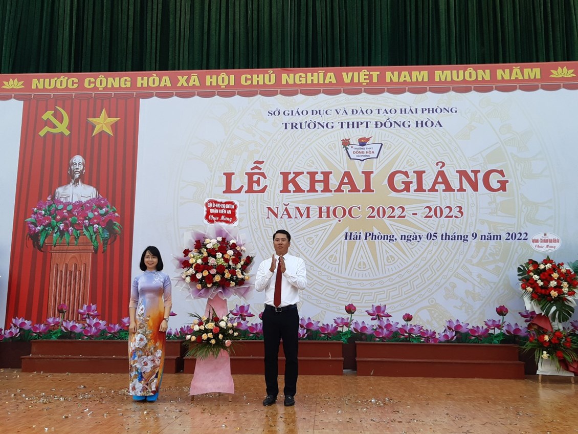 Đúng 7h30 ngày 05/9/2022, cùng với các trường thuộc ba cấp học, Trường THPT Đồng Hoà, quận Kiến An, thành phố Hải Phòng long trọng tổ chức Lễ khai giảng năm học mới 2022 – 2023. Phó bí thư thường trực Quận uỷ Kiến An, ông Lê Toàn Khánh – đến dự và chia vui cùng Thầy và trò nhà trường.