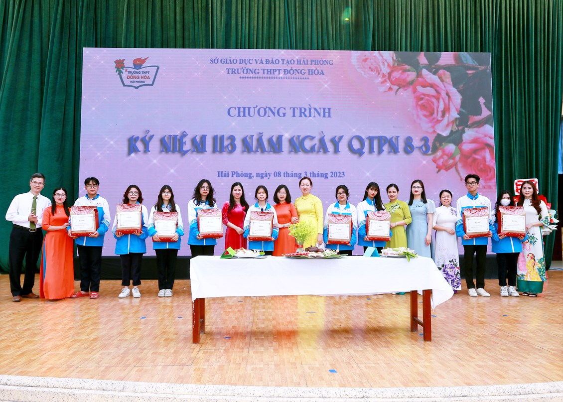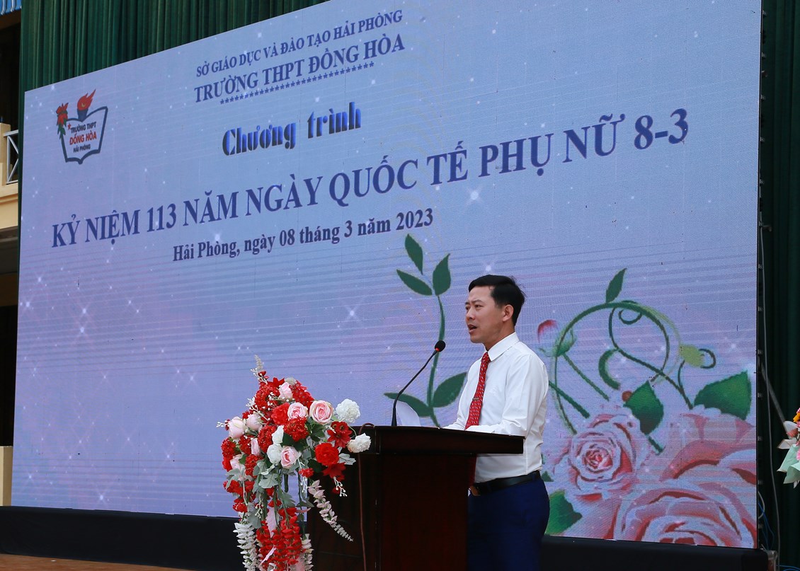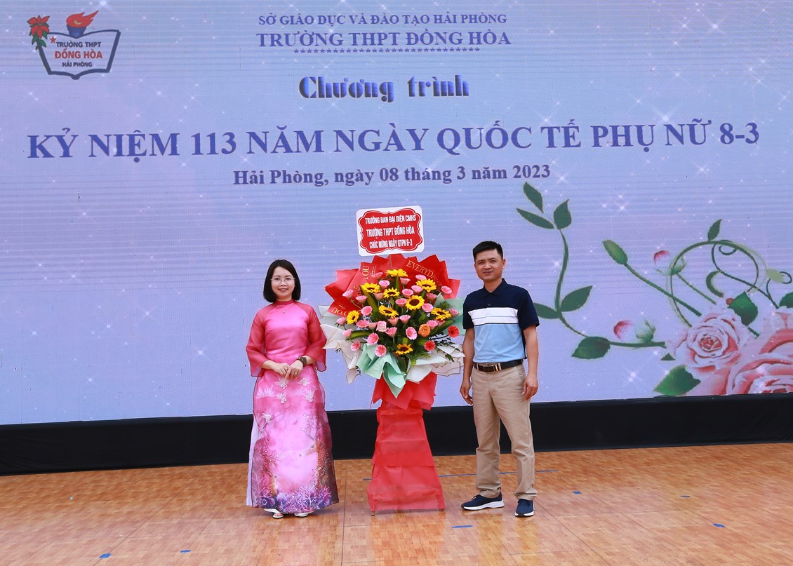 Phát biểu chúc mừng nữ đoàn viên nhà trường nhân Ngày Quốc tế phụ nữ 8/3, Nhà giáo Nguyễn Đức Tiệp, Phó Bí thư đảng ủy, Phó hiệu trưởng nhà trường nhấn mạnh vai trò và những đóng góp rất hiệu quả của nữ đoàn viên nhà trường trong công tác chuyên môn, trong đó, rất nhiều thành tích của nhà trường đều có sự góp mặt của nữ đoàn viên như: kết quả thi học sinh giỏi; thi giáo viên dạy giỏi cấp thành phố; giáo viên chủ nhiệm giỏi cấp thành phố, tham gia Hội đồng cốt cát môn học…đặc biệt nữ đoàn viên còn thực hiện tốt phong trào thi đua “giỏi việc trường, đảm việc nhà”.