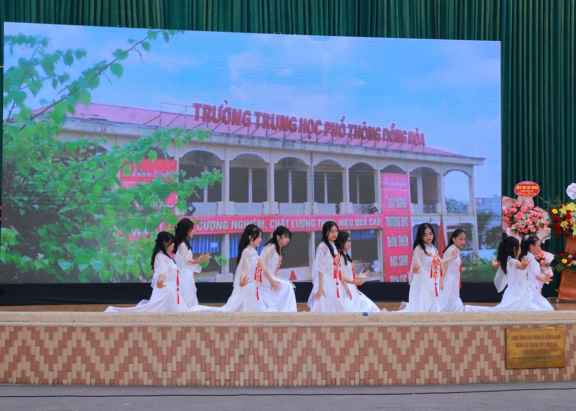 Trong diễn văn Lễ kỷ niệm 40 năm ngày Nhà giáo Việt Nam, Nhà giáo Hoàng Thị Phương Thảo, Bí thư Chi bộ, Hiệu trưởng nhà trường đã ôn lại truyền thống 40 năm ngày Nhà giáo Việt Nam và 19 năm hình thành, phát triển Trường THPT Đồng Hòa. Phát huy truyền thống tốt đẹp của ngành giáo dục, nhiều năm qua, thầy và trò nhà trường không ngừng phấn đấu, đoàn kết đưa nhà trường ngày càng phát triển.