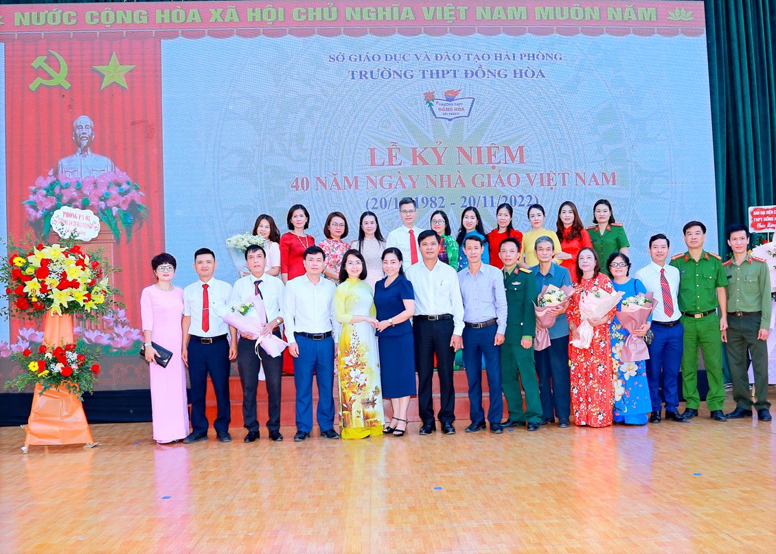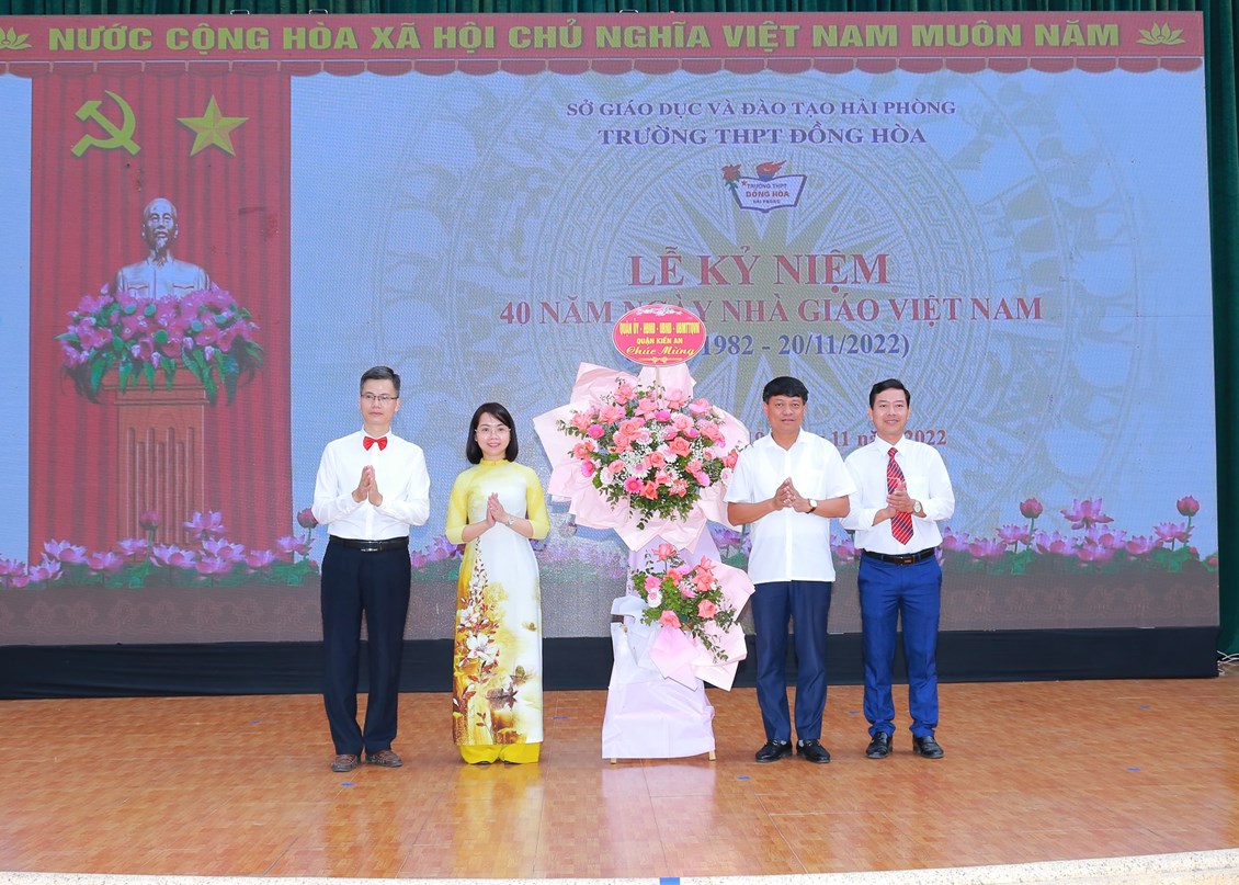 Sáng ngày 19/11/2022, Trường THPT Đồng Hòa tổ chức Lễ kỷ niệm 40 năm ngày Nhà giáo Việt Nam (20/11/1982 – 20/11/2022). Ông Phạm Văn Khanh, Ủy viên Thành ủy; Bí thư Quận ủy, Chủ tịch HĐND Quận Kiến An, Thành phố Hải Phòng; lãnh đạo HĐND, một số Ban, Quận đoàn đến dự và chung vui với thầy trò nhà trường. Về phía Ban ĐD CMHS, Ông Vũ Hữu Phong – Trưởng ban Ban ĐD CMHS nhà trường và đại diện ban phụ huynh của các lớp đến dự và chúc mừng Thầy Cô nhà trường.